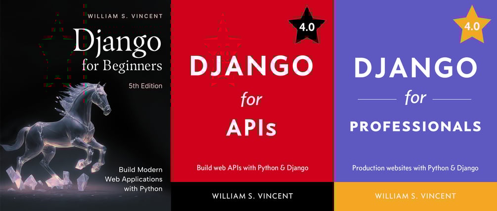 “Learning Django and the Django REST Framework by working through William S. Vincent's Django for Beginners, Django for APIs and Django for Professionals was a turning point in my career. I started to take myself seriously as a developer, not just an electrical engineering grad who happened to like coding.”—ANDREW QUINN on Hacker News